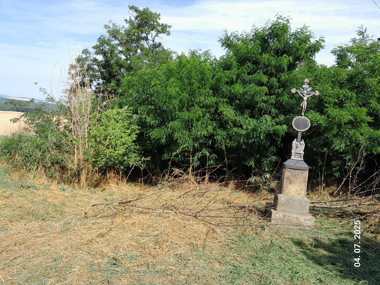 Bylo by potřeba okolo Božích muk srovnat terén a vytrhat zbylé pařezy po vykácených náletových dřevinách.